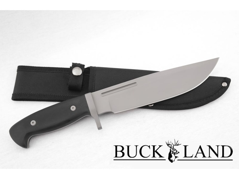 The "Fixed V1" has a titanium coated 3CR stainless steel fixed blade, with a stained black wooden handle and overall measuring 12.8 inches. It comes with a stiff nylon sheath.