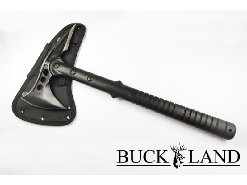 This axe features a black oxide finish 420 stainless steel axe head with a black fiberglass handle measuring 15.4 inches. Comes with a nylon sheath. If Everest is your destination, this axe is a must.