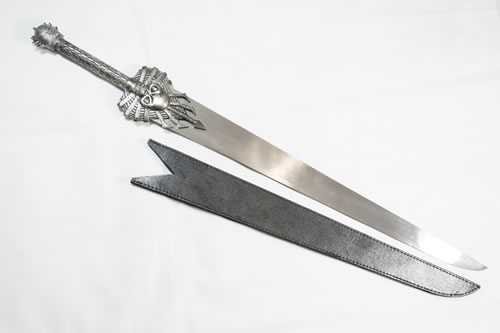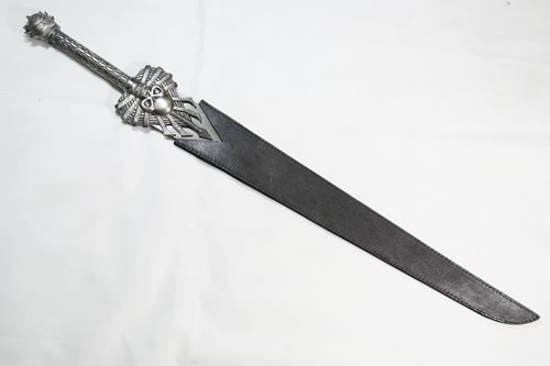 This sword is full size at 130cm and is made of stainless stell, with a leather scabbard.