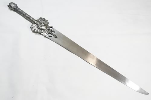 This Boss sword is made of 440 stainless steel. It comes with the scabbard pictured. This sword is full size at 130cm and is made of stainless steel, with a leather scabbard.