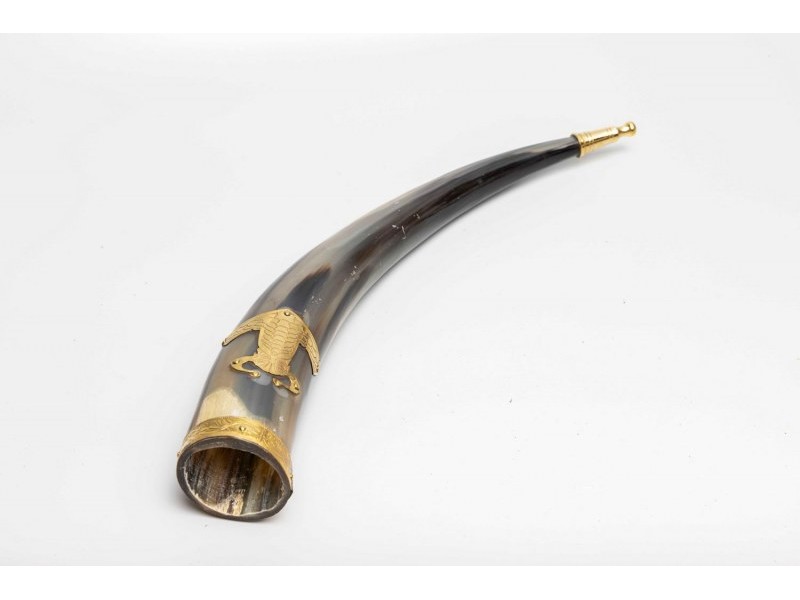 Genuine Natural Horn with Thors Hammer and Metal Fittings
