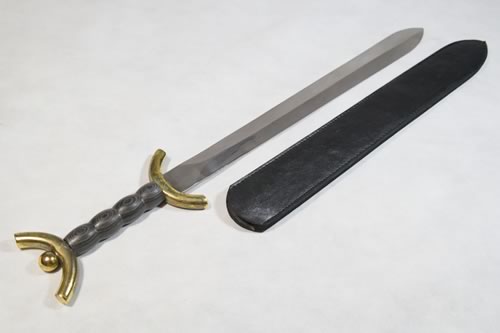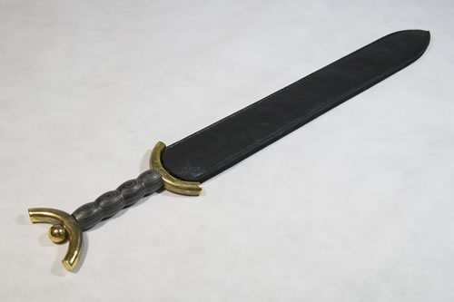 Celtic Shortsword from early first millenium. This is a full size Celtic Halstatt Sword. It is a copy of an original Celtic sword named after the site and era from which it came. It is 20" (or 51cm) long. The blade is made of stainless steel and the handle is wood and metal. It comes with the scabbard which is leather.