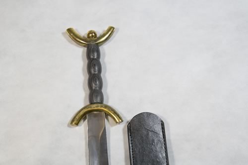 The celtic sword next to its sheath and its handle next to its sheath to show how well it fits.