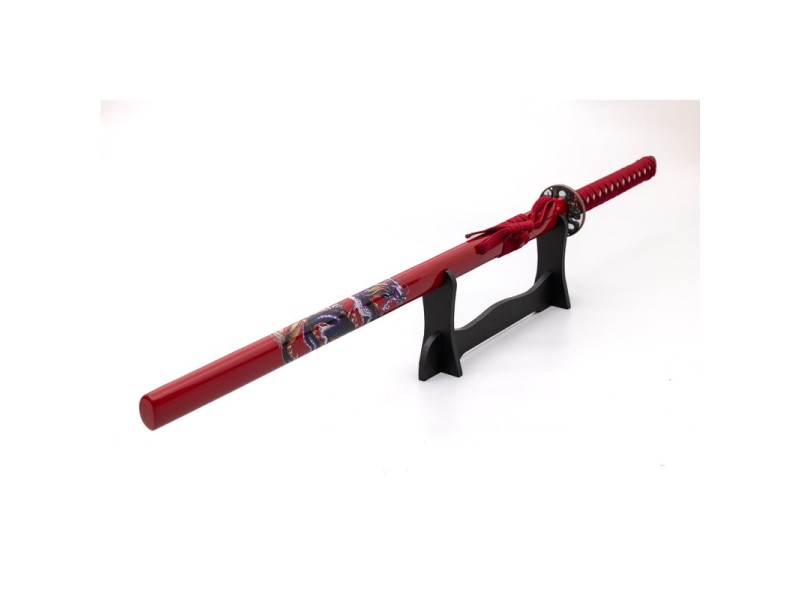 Red Katana with Blue Dragon
