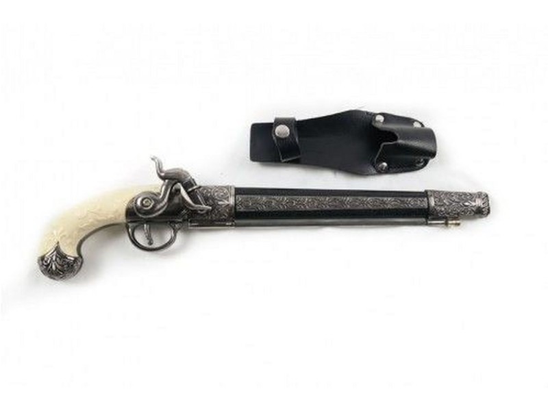 This is an imitation of a 1775 French Flintlock Knife Gun. They were popular in French hunting. When pistols were not as reliable as they are now it was nice to have solid steel backup. This is a full size high quality reproduction.
